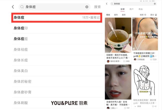 在小红书搜索“身体痘“,可以看到18万多篇笔记,话题讨论度很高,可见女生背部长痘的现象很普遍,而且对背部祛痘产品的需求很迫切。背部祛痘,呼声巨大!