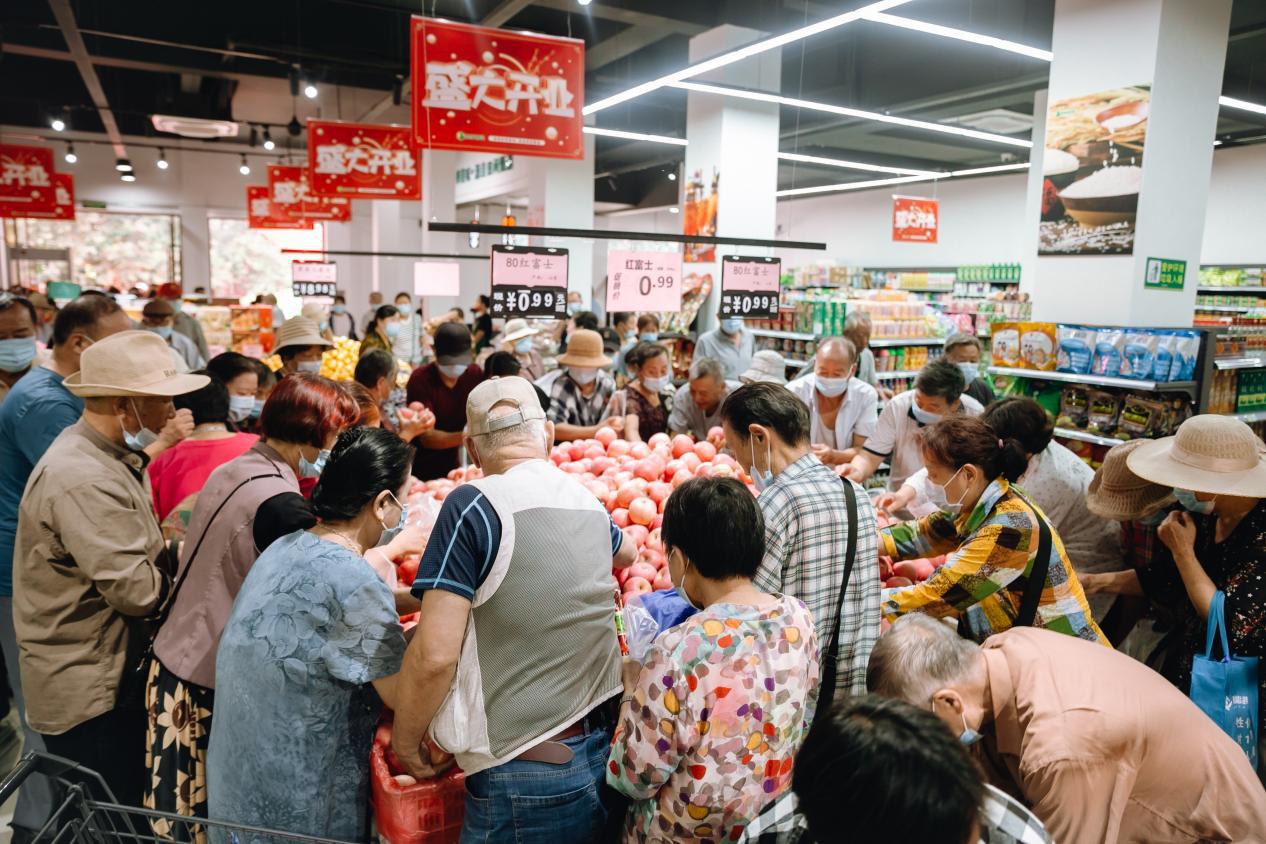 开业期间,店内推出到店充值送、特价商品、幸运大抽奖、四季田间微信小程序商城9.9元疯抢等多种促销活动,线上线下互动,吸引了众多消费者的青睐。
