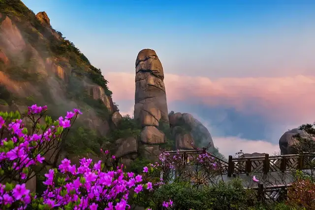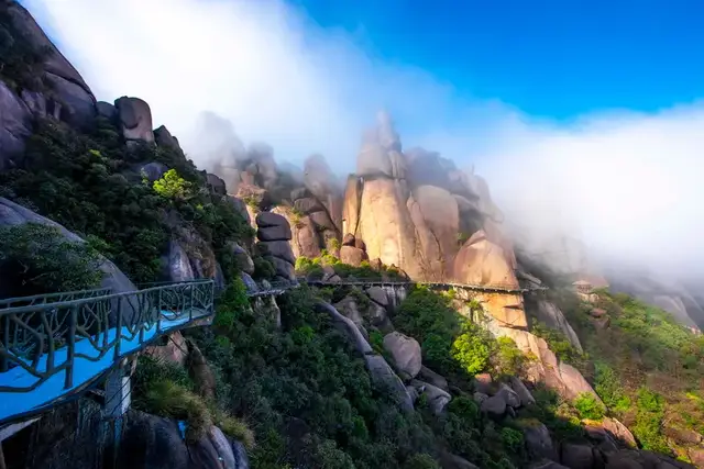 灵山景区地处江西省上饶市广信区北部,是国家级风景名胜区,国家4A级景区,景区面积101.5平方公里。灵山自然风光秀丽,以山峰挺秀著称,境内七十二峰,峰峰奇秀,三十六瀑,瀑瀑灵美。灵山,鸟瞰如巨龙盘山,远眺像美人仰卧,仰望似鹰击长空。灵山蜿蜒雄伟,延绵百里,形成了世界罕见的环状花岗岩峰林地貌奇观。灵山具有国内罕见的倒石地貌,这些花岗岩倒石,或寓于奇峰之巅吞云吐雾,或隐于半山之中藏珠蕴玉,或藏于溪涧之上弹琴击罄,可谓无峰不幽,无岩不奇。灵山拥有中国颇具特色的高山灵石梯田、江南落差最大的花岗岩瀑布以及地下温泉等大量奇绝珍贵的自然资源。灵山的神奇,还在于其常年紫气氤氲,风云变幻莫测。灵山不仅拥有天下奇绝的自然风光,更拥有极为深厚的人文信仰,是道、佛二教圣地,道家书列天下第三十三福地。灵山文化底蕴深厚,王安石、辛弃疾、陆游、杨万里、陆九渊等历代名宿大儒也都曾登临灵山,赋诗题咏,为灵山留下了300多首名篇佳作,赋予了灵山宝贵的精神财富。璀璨的民俗文化,处处阐述着古老而又神秘的传奇,描绘出灵山千年魅力的前世今生。