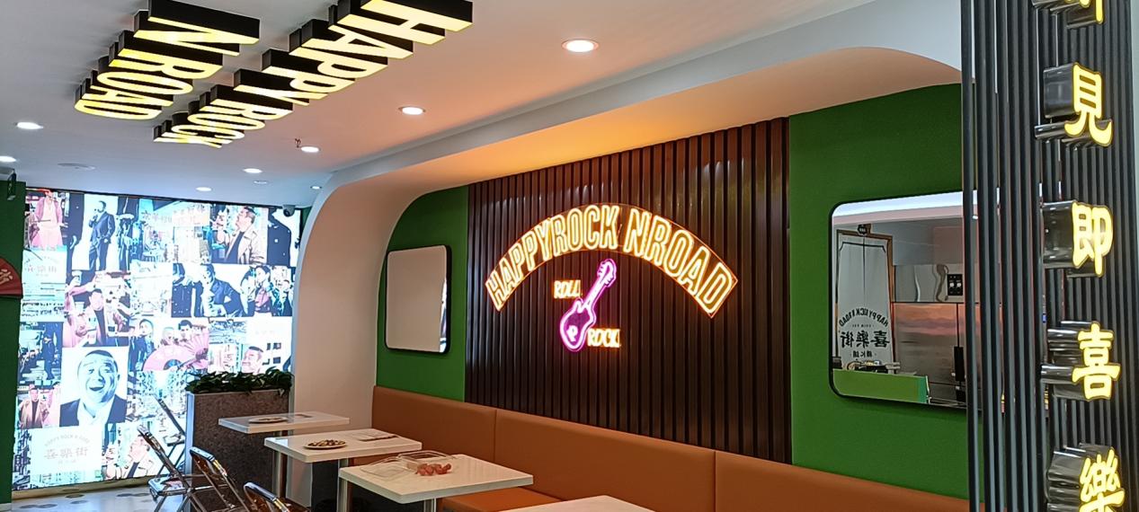放眼望去,经典的红绿门头,上世纪炫彩的霓虹灯,出挑的混搭颜色,整体装修老香港风味儿十足,在楚汉步行街尤为耀眼,进店犹如一秒穿梭至香港街头本土糖水店。高颜值的外表,独具特色的包装,拍照吸睛指数爆表,吸引了众多大咖博主、达人前来拍照打卡,ins、小红书、微博、朋友圈等自媒体平台为喜乐街打call贴不断。