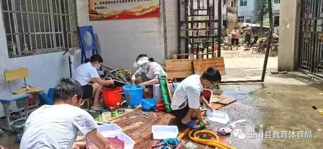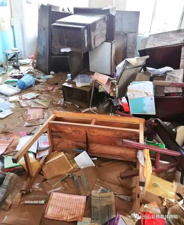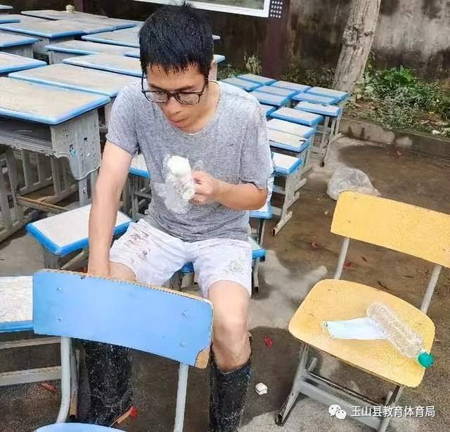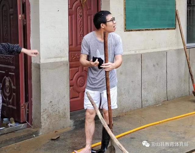 6月21日早上6点,姜校长来到学校,发现到处一片狼藉。于是又第一时间联系中心小学想要汇报灾情,但信号微弱,好不容易才汇报了坊头小学的受灾情况。想到期末在即,姜校长一心想着早日复课。6月22日,他不顾自己家里的灾情,组织全校教师一起给学校进行灾后大清理工作,每天从早上7点干到晚上7点。搬课桌、扫淤泥、清厕所,他总是干最脏最累的活,很累,但他毫无怨言。