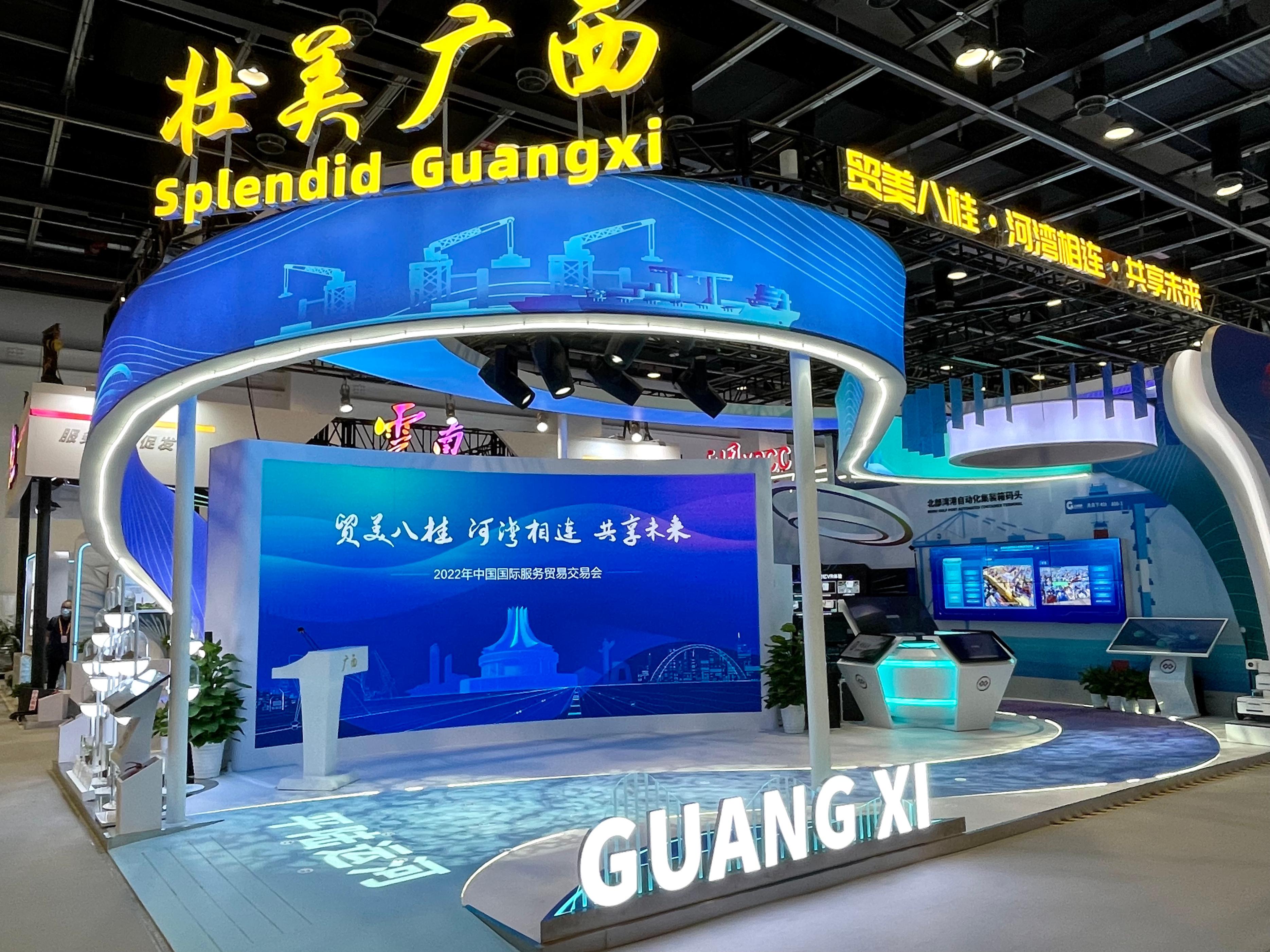 服贸金秋果丰硕,新朋故友赴约来。8月31日—9月5日,“全球服务·互惠共享”的口号再次唱响北京,迎着全世界的炙热目光,广西带着开放交流的热情惊艳亮相2022年中国国际服务贸易交易会。 “广西服贸”大展风采 VR体验、技术成果发布、动漫和非遗文创荟萃......9月1日,随着领导嘉宾共同按下启动手印,坐落于位于国家会议中心二期地上一层A102的广西形象馆正式开门迎客,服贸全球的广西精彩亮相,向世界展示广西服贸的独特风韵,为本届展会增添一笔绚丽多彩的壮美颜色。 据介绍,广西形象馆面积100平方米,以“贸美八桂·河湾相连·共享未来”为主题,围绕“湾河相连·梦广西”、“金融创新·惠广西”、“平台引领·新广西”三大主题设置了VR体验区、金融展示区、物流运输展示区、特色医药展示区、动漫和非遗文创展示区等多个功能区域。每一展区主题鲜明且各具特色,全方位、多角度、数字化地展示广西服务贸易的特色优势和最新成果。 据了解,本届服贸会,广西精挑细选多家优质重点服贸企业参展,既有南宁峰值文化传播有限公司、广西阔迈登文化传媒有限公司等动漫领域的“大咖”,又有接力出版社有限公司、广西师大出版社集团有限公司等图书版权输出行业的“翘楚”,更有广西博物馆、桂林威逊体育文化有限公司等带来的广西特色文创。特别是广西虚拟现实科技有限公司的广西民族记忆VR体验项目,吸引了众多观众驻足,让每一位观众沉浸式地体验到了广西民俗文化的独特魅力。此外,展会期间广西预筹成交项目22个,项目合计金额超4亿美元,有望实现参展以来历史性突破。 开馆当天,广西形象馆举办了广西服贸领域最新技术成果发布会,重点推出广西崇左无人驾驶智慧通关技术、VAE虚拟现实辅助工程引擎M3D技术等成果。 广邀“桂”客共话商机 同期,广西举办系列配套活动,借助服贸会的平台,更好地展示广西服务贸易发展合作潜力,争取更多投资者到广西投资兴业。 从广西服务贸易项目招商推介会上获悉,本次推介会以“汇聚东盟、互联广西、共赢未来”为主题,广西商务厅、广西文化和旅游厅、广西中医药大学、广西供应链服务集团、中国—东盟信息港股份有限公司、广西广播电视信息网络股份有限公司等分别围绕广西服务贸易发展潜力、广西数字经济(技术)与实体经济融合、供应链以及商务服务等内容进行了专题推介,并邀请了重点服务贸易企业分享其在广西投资合作经验。通过此次招商推介,共促成5家企业进行现场签约。 此外,在广西工业设计沙龙上,广西商务厅、广西工业和信息化厅等还与工业和信息化部有关领导以及世界绿色设计组织、北京大学、清华大学等组织机构和高等院校的专家学者围绕推动广西工业设计集聚发展、服务中国东盟合作等议题进行了交流讨论与洽谈合作。 广西商务厅相关负责人表示,广西壮族自治区党委、政府高度重视广西服务贸易发展,全力打造面向东盟的服务贸易。2022年一季度,广西服务贸易总额达6.8亿美元,同比增长23.5%,呈现出良好的发展态势,并且在RCEP政策红利的提振下,面向东盟的服务贸易发展更是未来可期。希望通过本届服贸会上举办的系列配套活动,充分发挥服贸会的“窗口”优势,向全世界展示广西服务贸易的最新成果与发展潜力,有效扩大招商引资渠道,全力推动与京津冀等服贸发达地区产业投资合作,让更多优质的服贸项目在广西“落地生根、开花结果”。