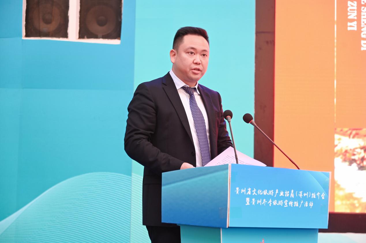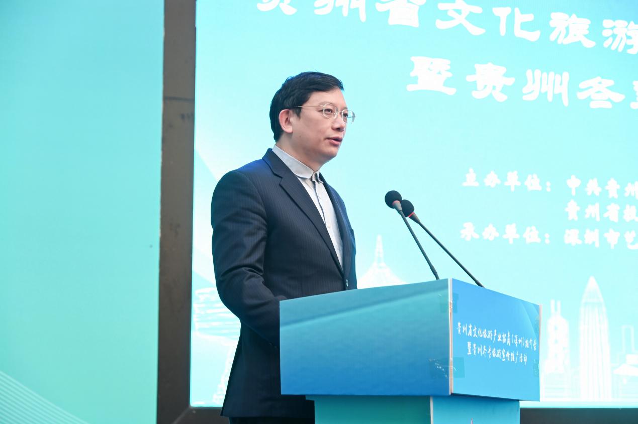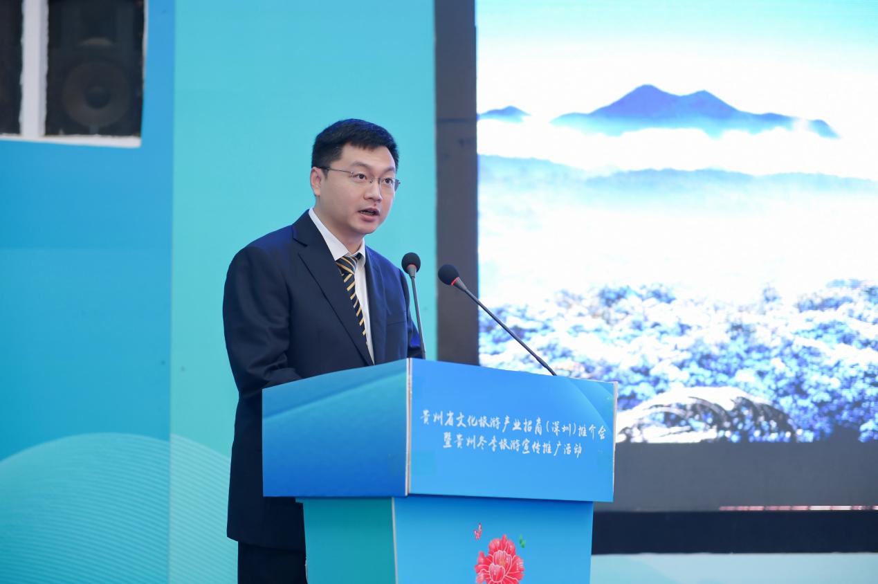 会上,贵州省委常委、宣传部部长卢雍政作贵州文旅产业招商推介。他提到,贵州与广东同属泛珠区域,“我住珠江头、君住珠江尾”,两地交流合作源远流长。党的十八大以来,广东坚决贯彻习近平总书记关于东西部扶贫协作的重要指示精神,把帮扶贵州作为重大政治任务,为贵州按时打赢脱贫攻坚战和高质量发展作出了重要贡献,助力贵州创造了赶超进位的“黄金十年”,携手演绎了粤黔版“山海情”。粤黔两省文旅资源各具特色、合作空间巨大、发展前景广阔。愿以文旅产业协作为契机,深化新一轮东西协作,推动粤黔两省合作巩固前缘、再谱新篇,助推国内国际旅游恢复生机、焕发活力。山地公园风景独好,多彩贵州四季俱美。卢雍政部长真诚期待深圳的有识之士到贵州参观考察、休闲度假、投资兴业,同念山海经、合奏共赢曲、共圆强国梦。