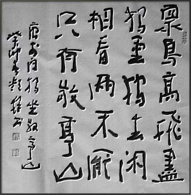 在他的书法艺术和理论文章中,我们能看到他既不拘泥于传统,又不脱离当代文化,融合了东西方文化艺术的精华,在呈现出传统文化的同时,又以新的视角和语言阐释着当代书法的艺术价值、审美方法和沉淀深度。既有传统书法之高古之风骨,又有现代书法之新今之气韵,展现了中国书法艺术的深刻内涵和高广的外衍。