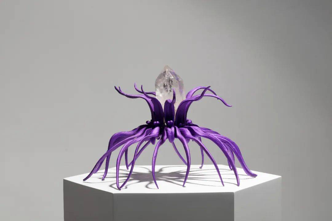 “九鼎系列”是曹雅薇非常喜欢的一个系列,这个系列,曹雅薇希望每个人都关照自己的内心,找到最能和自己同频的九鼎。九鼎系列优雅、纤细却不失庄严感,其中有来自大自然的各种美丽的生物,比如水母、海葵、菌类、花朵等等。共存共生,这就是紫色星球最核心的宇宙观。