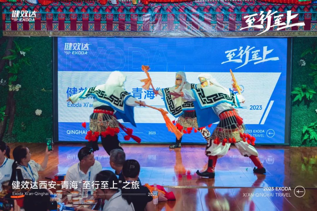 想要探索城市的灵魂,就要深入了解这座城市的文化。来到青海,健效达家人们首先参观了5A景区——彩虹部落土族园,了解当地土族的历史、民俗文化、土族非物质文化遗产、民族建筑风格和土族生产生活习俗等。与此同时,藏式风情的民族歌舞和民族演绎,让家人们感受到青海人民的热情。