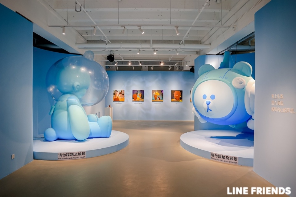 中国,上海——近日,国际创意工作室LINE FRIENDS于旗下人气形象BROWN布朗熊的生日之际,跨界联合潮流生活美学品牌SankToys,在8月6日至21日间于上海新晋潮流艺术空间MEET U举办以“心海之境”为主题的限时潮流艺术展。以LINE FRIENDS人气IP“布朗熊”与SankToys主理设计师——宅仔所创作的经典IP“藏克”及“幻童”之间的邂逅奇遇为创作灵感,展览通过艺术版画、大型IP美陈、投影大屏及互动装置等多元化创意表达构筑沉浸式体验空间,引领粉丝开启潜入内心深海的心灵奇旅,共同感受布朗熊生日之际的成长与陪伴带来的治愈氛围。同时,双方亦联名推出“向心之海”与“童梦守护者”两款融合双方IP形象的限量款潮玩作品,具象化表达双IP联名背后的温暖治愈故事与艺术文化内涵。这不仅是LINE FRIENDS进击潮流艺术领域发展的一次创举,更彰显了品牌希翼给予Z世代年轻群体心灵疗愈力量的积极对话姿态。