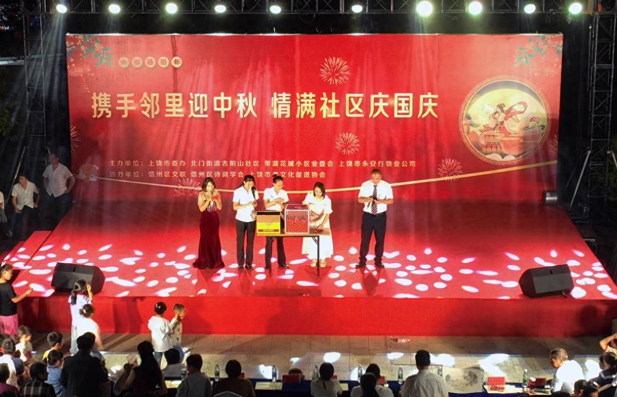为了迎接中秋、国庆佳节的来临,丰富辖区居民文化生活,营造良好的节日氛围。9月22日晚,江西省上饶市信州区北门街道吉阳山社区文明实践站联合上饶市委办公室、信州区文联、带湖花城小区业委会、上饶市永安行物业有限公司等单位,开展“大抓基层年——携手邻里迎中秋 情满社区庆国庆”主题活动。