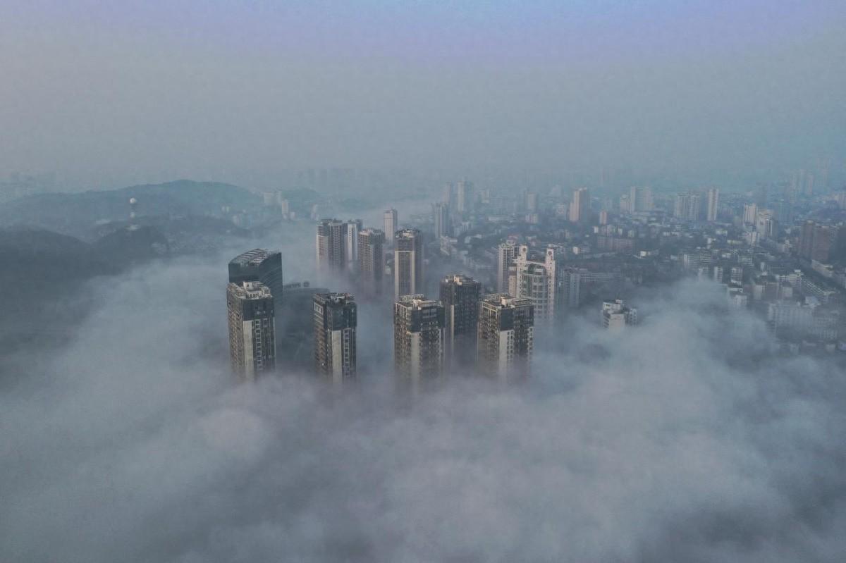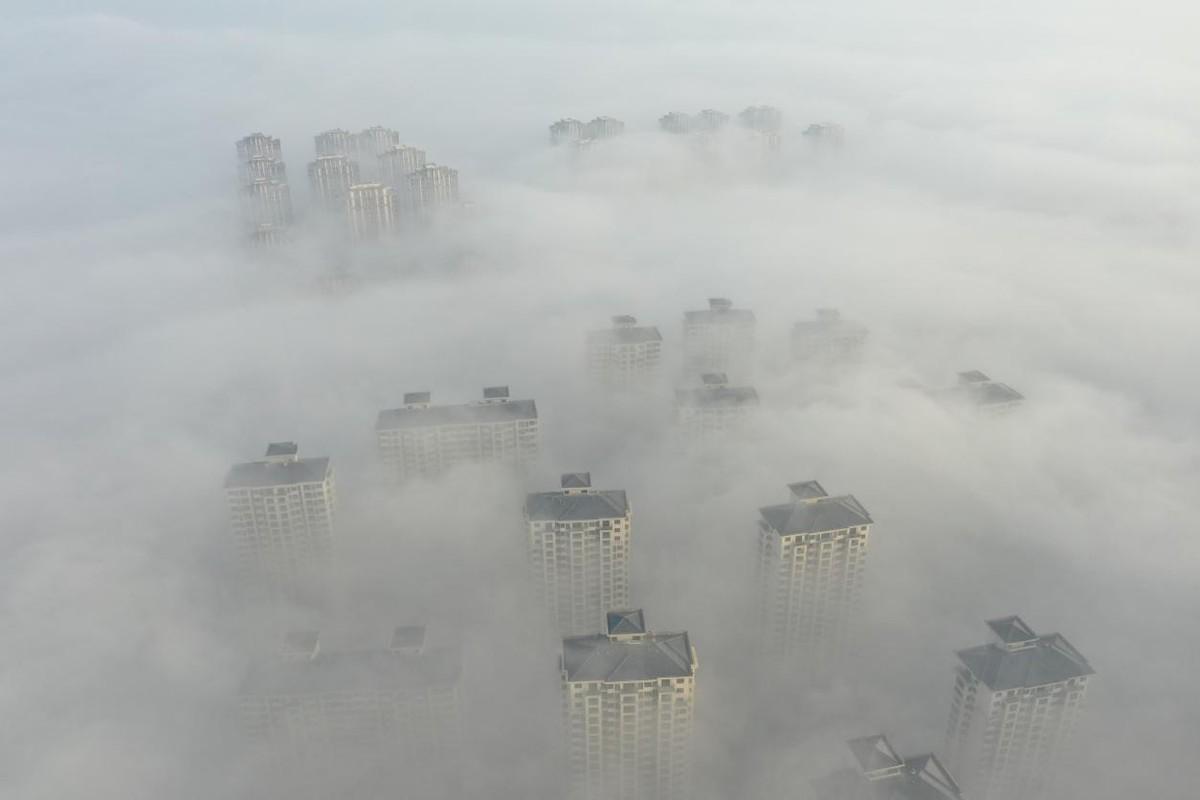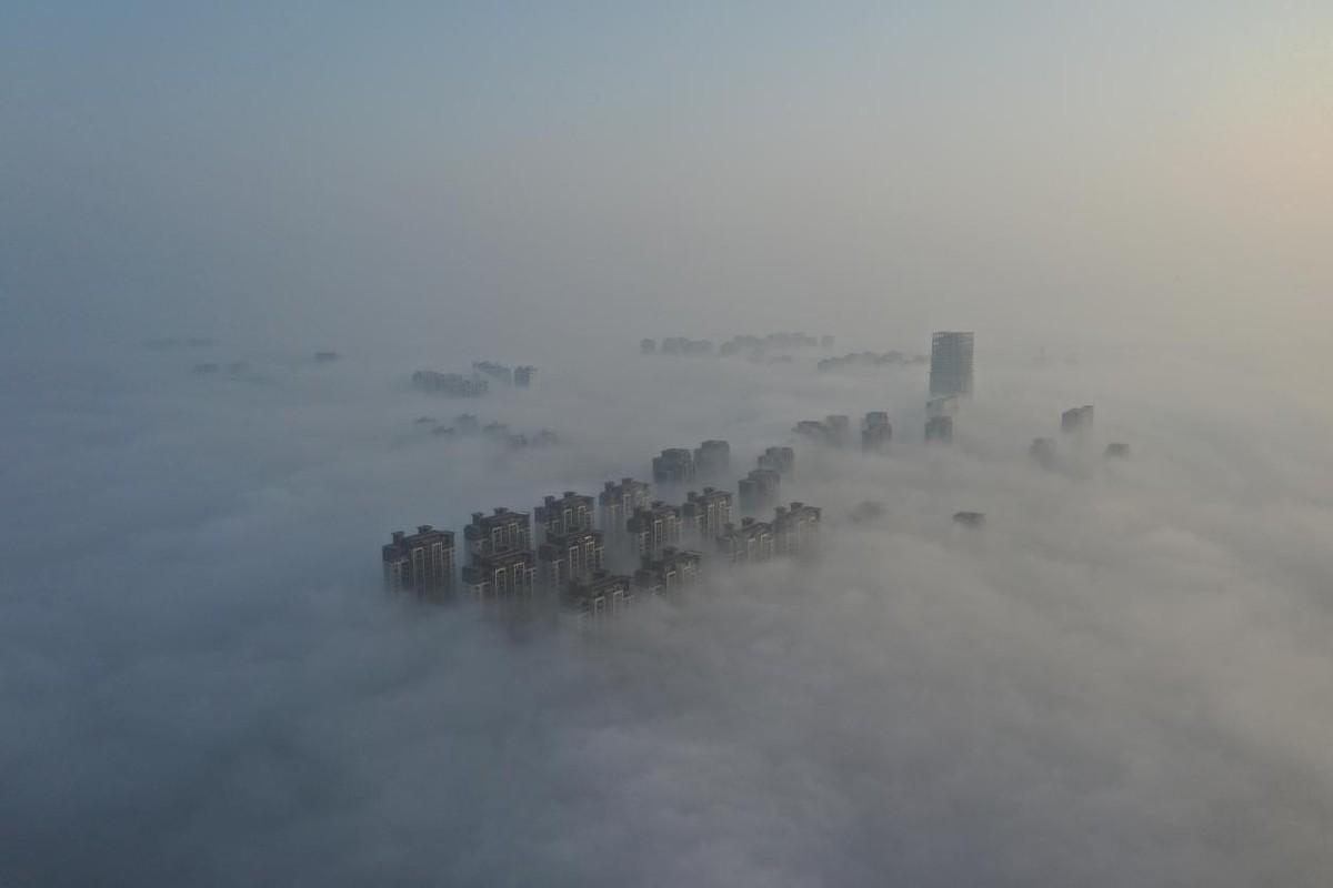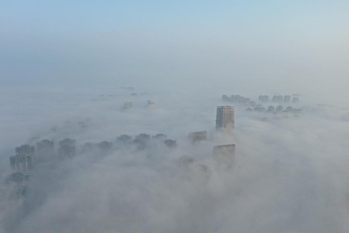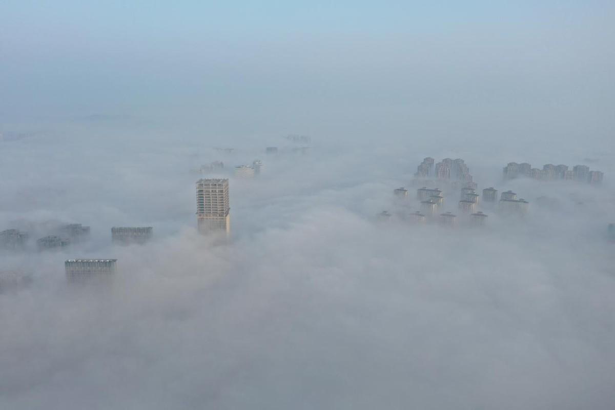 2024年3月8日晨,一场大雾,将江西省上饶市高铁新区、信州区美成仙景。只见云雾随风不断变幻翻卷、一幢幢高楼在云烟中若隐若现,仿佛把这座城市染上了一层梦幻的色彩。