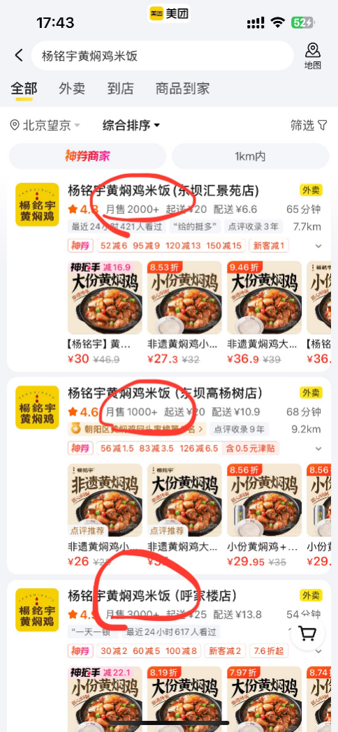 黄焖鸡食品安全事件发生后,大量用户要求美团作为头部外卖平台下架杨铭宇黄焖鸡,并自查自审平台上黄焖鸡商户是否符合食品安全标准。不过截至发稿,3000余家杨铭宇黄焖鸡仍在美团平台上经营销售,多家门店销量破千。