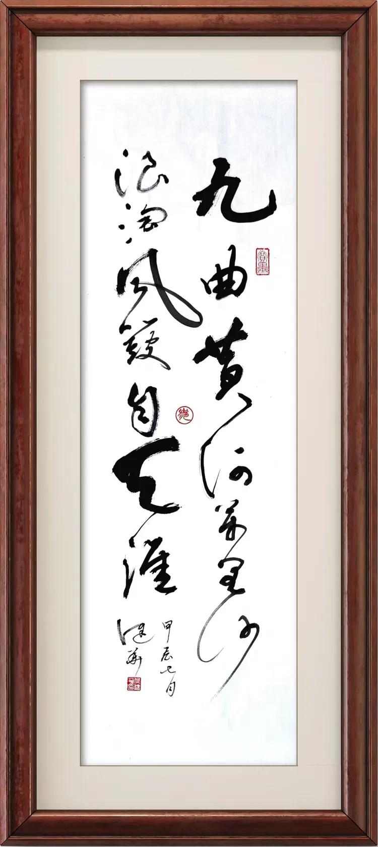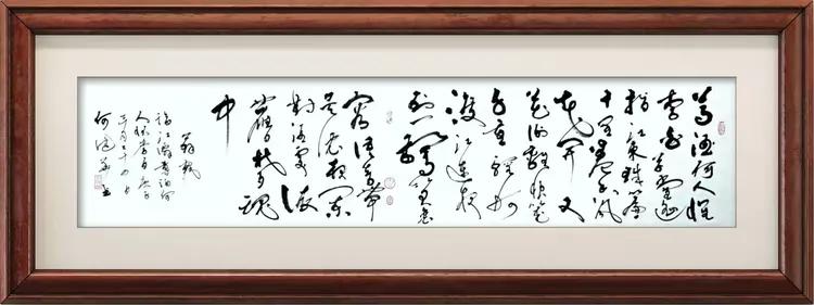 何健华先生广泛学习楷篆隶行草5体书法,专注张旭怀素法贴的临习,特别强调草书的用笔力度与线条之美,形成“铁画银钩,力透纸背”的独特风格,何先生的作品毛泽东《七律•冬云》403×96cm于2022年4月8日获中国国家博物馆收藏;美、澳华人及俄罗斯、巴基斯坦等国也收藏了其作品。2025年获得莫奈国际艺术金奖。