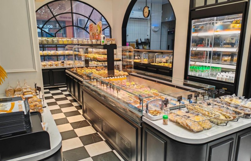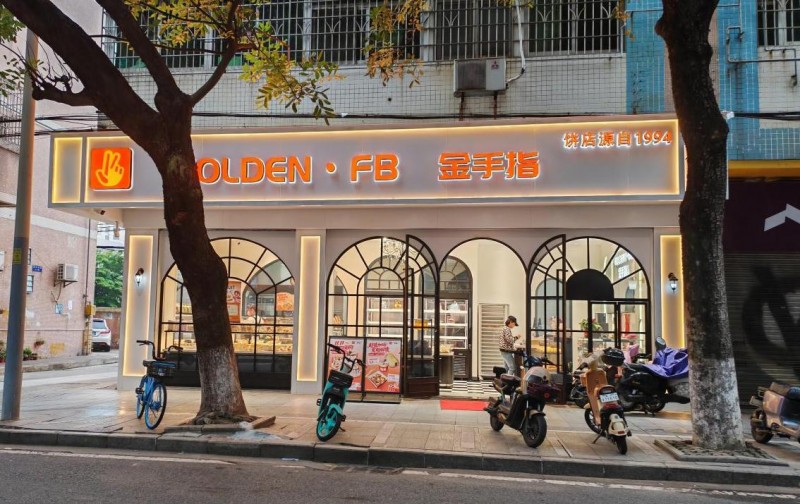 在产品方面,金手指推出多款明星产品,如岩烧榴莲软欧、菠菜肉松芝士贝果、丹麦披萨等,涵盖面包、蛋糕等多个系列,满足不同消费场景与口味需求。店内环境与产品陈列也经过精心设计,暖色灯光与特色专柜营造出温馨舒适的购物氛围。